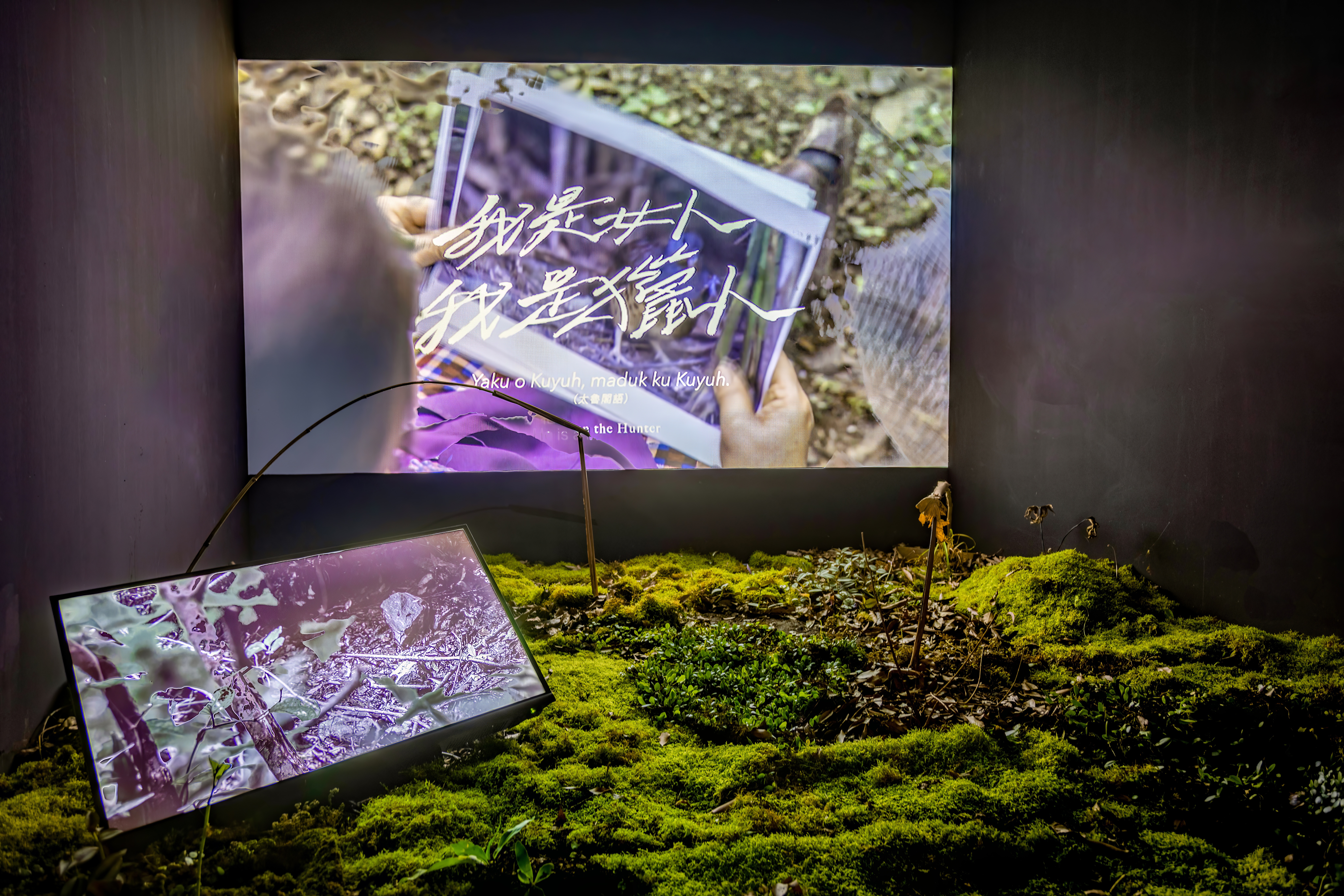 這次的作品《召喚》,發想的開始是從2021年至2022年的秋冬拍攝《揹獵物的女人》的田野調查所延伸出來的創作計畫,有關於過去太魯閣族獵人、獵場(土地)與傳統信仰儀式中緊密相連的超自然力量,如果同一個獵區打不到獵物,就會透過神靈的力量來獲取動物。